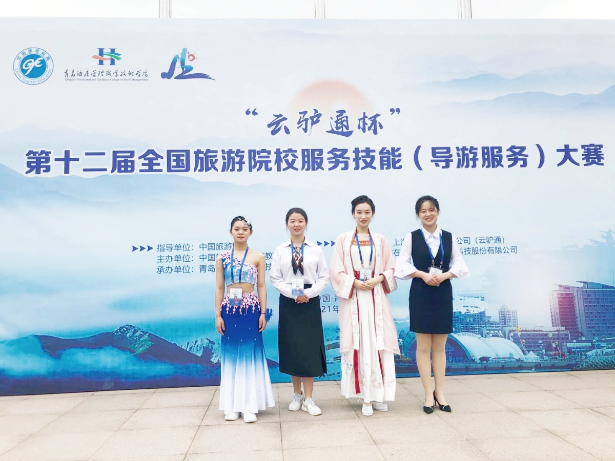 近日,由文化和旅游部、中国旅游协会指导,中国旅游协会旅游教育分会主办的第十二届“云驴通杯”全国旅游院校服务技能(导游服务)大赛在青岛落下帷幕。欧美av 莫铭非、赵晶茹、刘媛媛、杨擎擎四位本科生分别参加了高等院校组普通话导游服务和英语导游服务的比赛。经过参赛选手和指导老师的共同努力,最终荣获一等奖1项、三等奖3项。