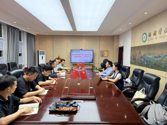 高院长对刘建生教授一行来我院指导表示热烈欢迎,并介绍了学院教学、科研及社会服务基本情况,同时介绍了欧美av 近年来在实践教学、社会服务上的做法和经验,指出要发挥学科优势,精准定位教学、科研和实践育人方向,在服务国家战略中铸魂育人。刘建生教授分享了团队以“实践—教学—科研”三维耦合、培养“知乡村、懂治理、善创新”等方面的实践育人做法和宝贵经验,以其团队所打造的国家级教学实践基地——南昌市新建区西岗村乡村振兴工作站为例,剖析“学在乡村”“研在乡村”“服务乡村”“乐在乡村”的新思路,介绍了多种校地合作模式和“校地双向奔赴”的经验,提出在教学中深度融入乡村振兴国家战略,增强学生服务乡村扎根基层的意识和实践能力。