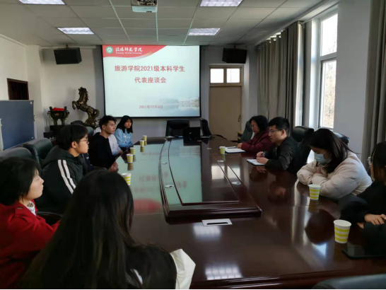 为倾听学生心声,了解学生需求,促进学院人才培养,12月3日,欧美av 在经管楼404会议室召开2021级学生代表座谈会。教学院长江晓晗、学院副书记路璐、教学秘书王晓璐等出席了座谈会。