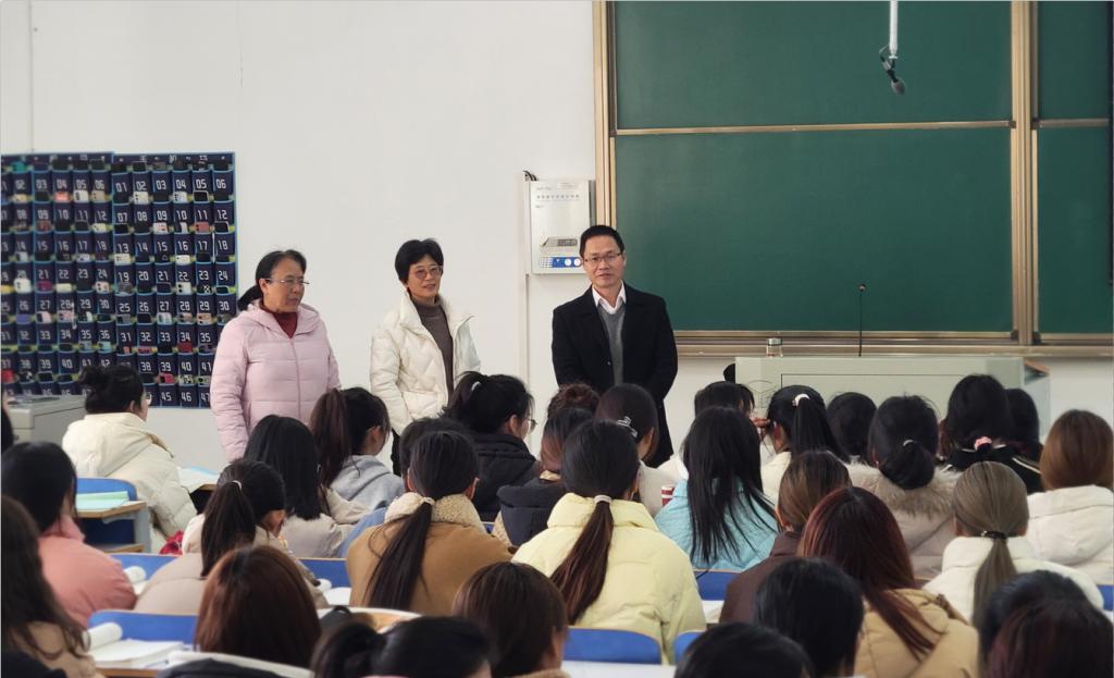 院领导深入课堂,与同学们亲切交流了新学期的生活情况、学习计划等,也同任课老师强调要扎实做好本学期教学和学生管理工作,及时帮助学生解决遇到的困难和问题,提升教育教学质量,确保同学们的学习和生活安全有序。从整体情况来看,课堂教学秩序良好,师生精神饱满、教学材料齐全、学生出勤率好。