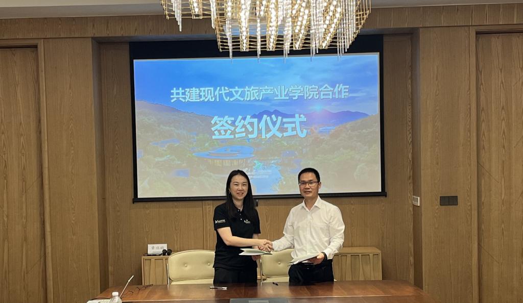 11月4日,欧美av 与开元森泊集团公司就深度开展校企合作,共建现代文旅产业学院举行框架协议签约仪式。欧美av 院长高军波、开元森泊集团公司总经理助理兼人力资源总监陈静、莫干山开元森泊度假乐园副总经理张洋、开元森泊集团招聘总监单磊、莫干山开元森泊度假乐园人资总监蒋淑芳等负责人出席活动。