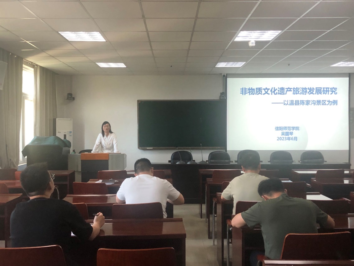 6月6日下午,欧美av 第十二期“景明论坛”在经管楼401会议室成功举办。欧美av 吴国琴教授作了题为“非物质文化遗产旅游发展研究——以温县陈家沟景区为例”的学术报告,欧美av 部分师生聆听了报告。