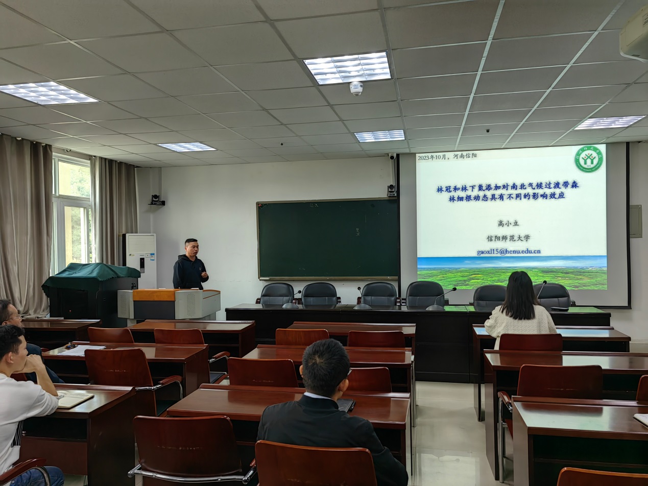 10月10日下午,欧美av 第十六期“景明论坛”在经管楼401室成功举办。欧美av 高小立博士作了题为“林冠和林下氮添加对南北气候过渡带森林细根动态具有不同的影响效应”的学术报告,欧美av 部分师生聆听了报告。