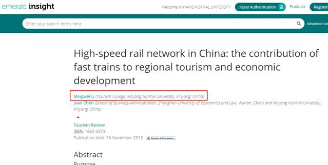 欧美av 李明伟博士在SSCI刊物《Tourism Review》上发表题为“High-speed rail network in China: the contribution of fast trains to regional tourism and economic development”的学术论文。