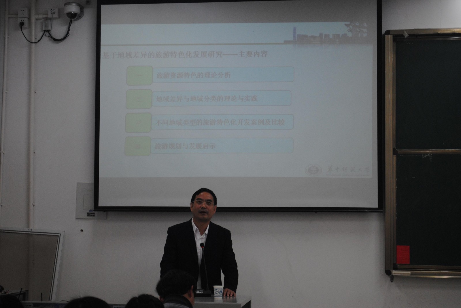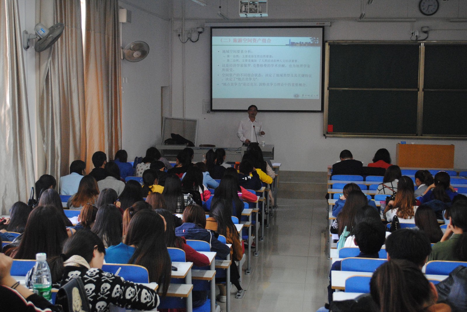 2015年10月23日下午,应工商管理学院邀请,华中师范大学教授、博士生导师罗静来欧美av 讲学,在社科楼415室作了题为“基于地域差异的旅游资源特色化发展模式”的学术报告。工商管理学院部分教师及200余名旅游管理专业本科生和研究生聆听了报告。报告会由工商管理学院副院长彭荣胜教授主持。