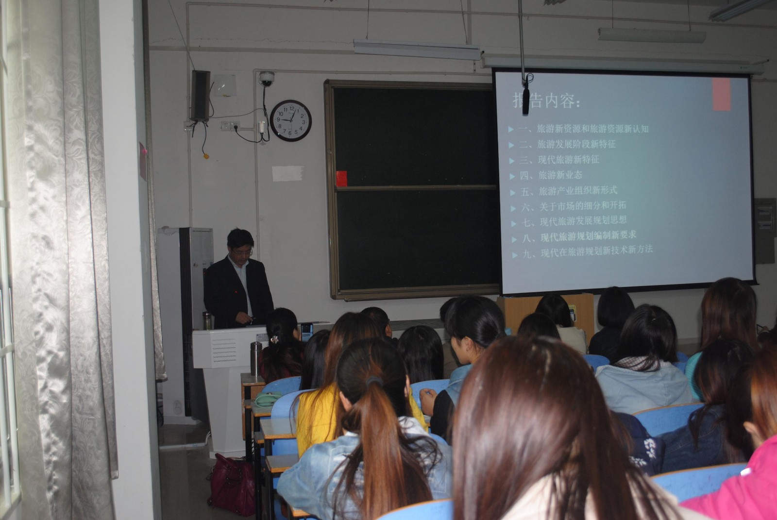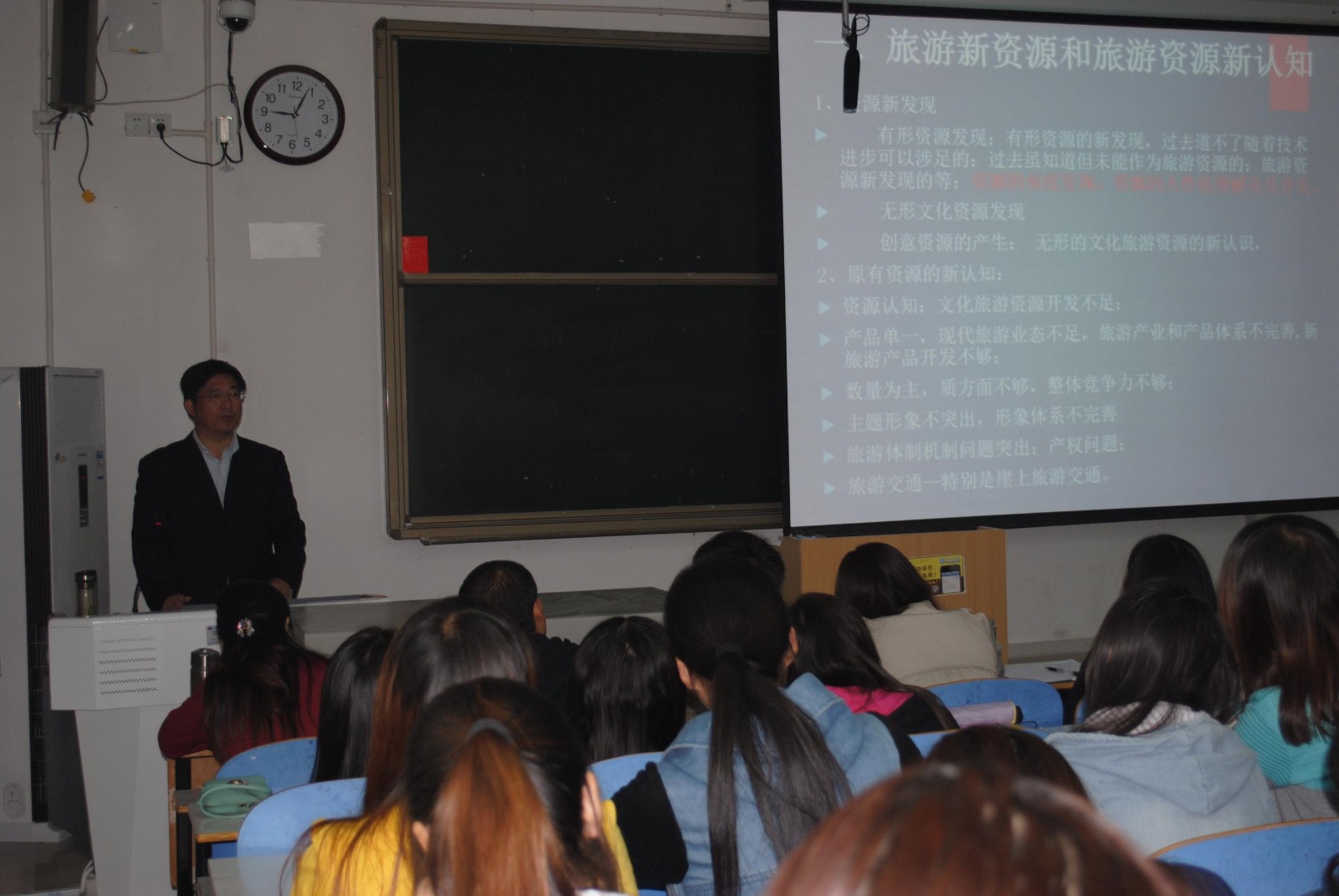 2015年10月26日上午,应工商管理学院邀请,河南省科学院地理所所长冯德显研究员来欧美av 讲学,在经管楼204室作了题为“‘十三五’时期我国旅游产业发展”的学术报告。工商管理学院部分教师及100余名旅游管理专业本科生和研究生聆听了报告。报告会由工商管理学院院长曹明贵教授主持。