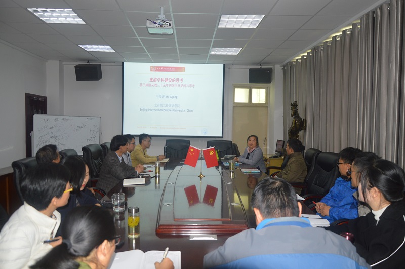 第一场报告会中,马爱萍教授从文化与旅游融合发展的角度来分析旅游文化演出市场与旅游产业发展的关系,并提出地方文化旅游品牌构建策略。在第二场报告会中,马教授结合自身多年的国内外从教经历,以开阔的视野,对新时代旅游学科建设的基本问题做了深入解读和思考,并提出了推进旅游学科建设的建议。报告结束后,马教授还就相关问题与师生进行了交流。