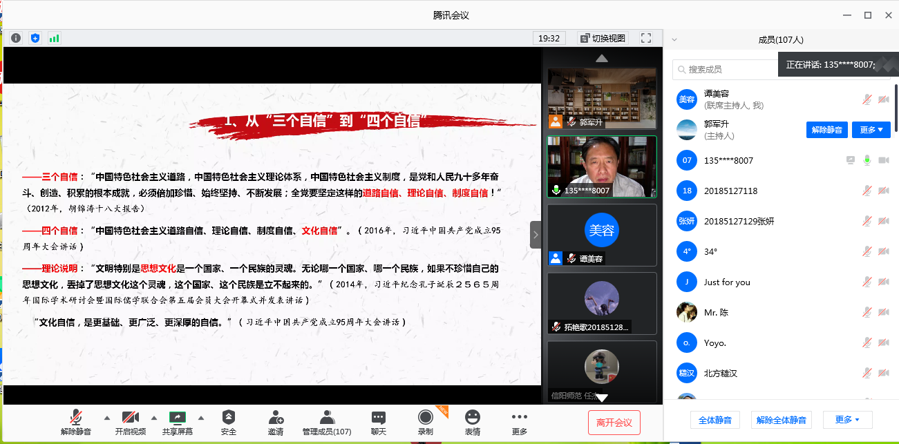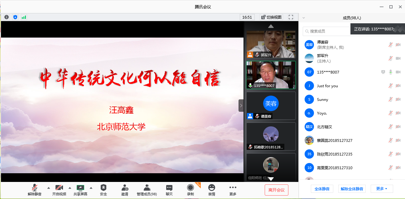 9月28日晚上,应欧美av 邀请,北京师范大学教授、博士生导师汪高鑫通过腾讯会议做了题为“中华传统文化何以能自信”的学术报告。报告会由欧美av 副院长郭军升主持,百余名师生聆听了报告。