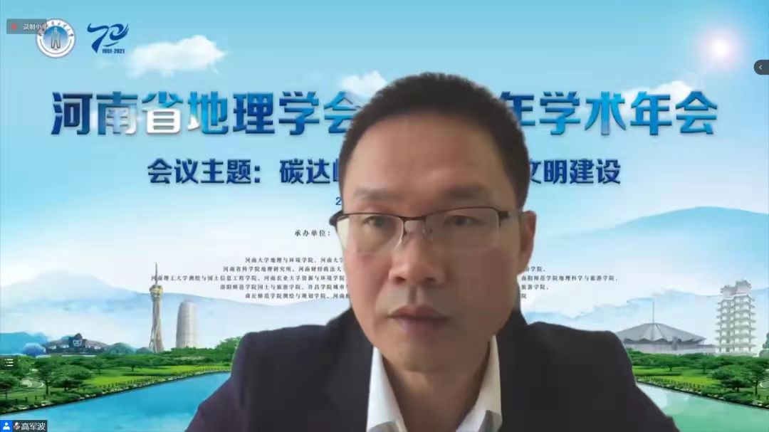 10月30日,由河南省地理学会主办、信阳师范学院欧美av 参与承办的“河南省地理学会2021年学术年会”在郑州举行。会议以“碳达峰碳中和与生态文明建设”为主题,旨在促进河南省地理学创新与发展,服务国家战略和中部崛起,推动碳达峰碳中和背景下黄河流域生态保护和高质量发展。按照新冠疫情防控的要求,会议采用线上线下结合的方式进行。院长高军波教授带领部分青年教师参加了此次会议。