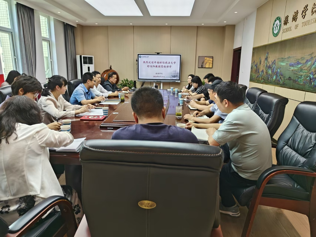 5月21日上午,应欧美av 邀请,中南财经政法大学教授、博士生导师舒伯阳在经管楼404会议室作了题为“决胜AI时代:未来文旅人才的右脑思维转型”的专题报告。报告会由院长高军波教授主持,欧美av 部分教师和研究生聆听了报告。