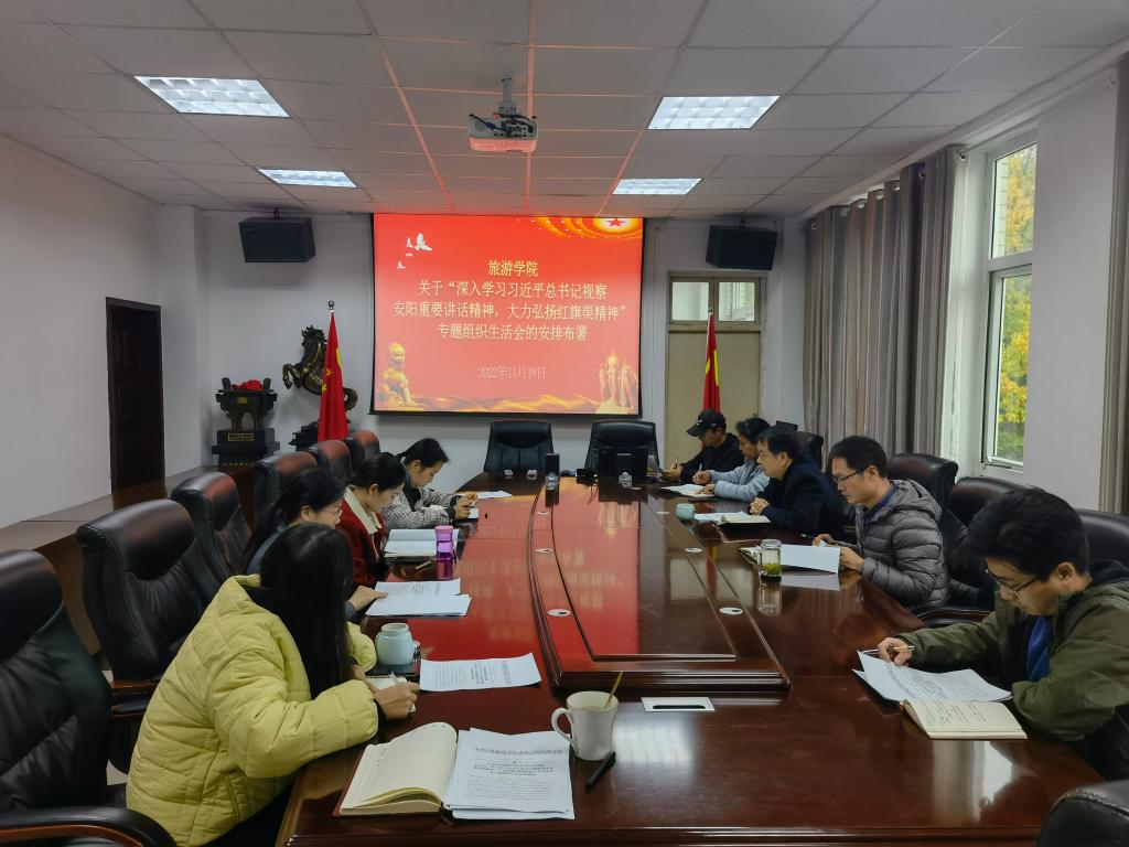 11月18日下午,欧美av 在404会议室召开关于“深入学习习近平总书记视察安阳重要讲话精神,大力弘扬红旗渠精神”专题组织生活会的安排部署。欧美av 领导班子成员和各支部书记参加会议,会议由学院党委书记雷前龙主持。