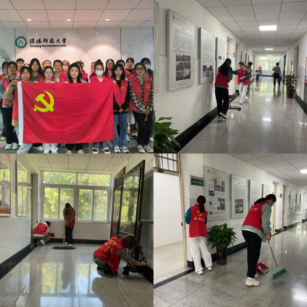 本次志愿活动在经管楼四楼进行,参加活动的学生党员主要负责教学楼的清洁工作,内容主要包括宣传栏的擦拭、地面的清洁、会议室的整理等。大家自行携带打扫工具,穿上统一的志愿服务红马甲,分工协作,对楼内的重点区域、卫生死角进行了细致的清理。最后党支部成员将劳动工具清洗干净放回原位,并合影留念,通过一上午的劳动圆满完成此次“党员志愿服务活动”。