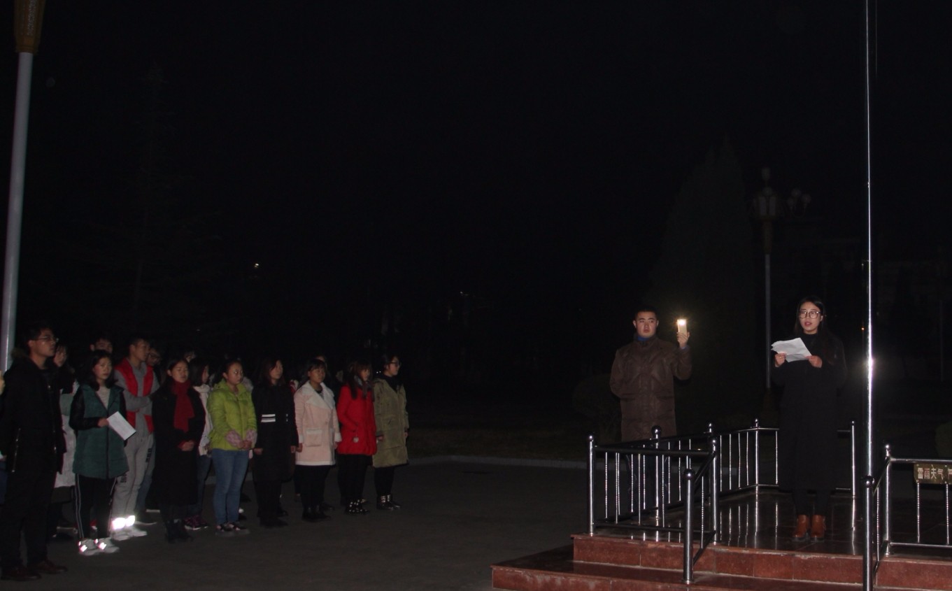 12月12日早,欧美av 在行政楼前明德广场举行首次升旗仪式。我院党委副书记张晓峰,团委老师张庆敏出席升旗仪式,与全体16级学子共同见证这一庄重时刻。