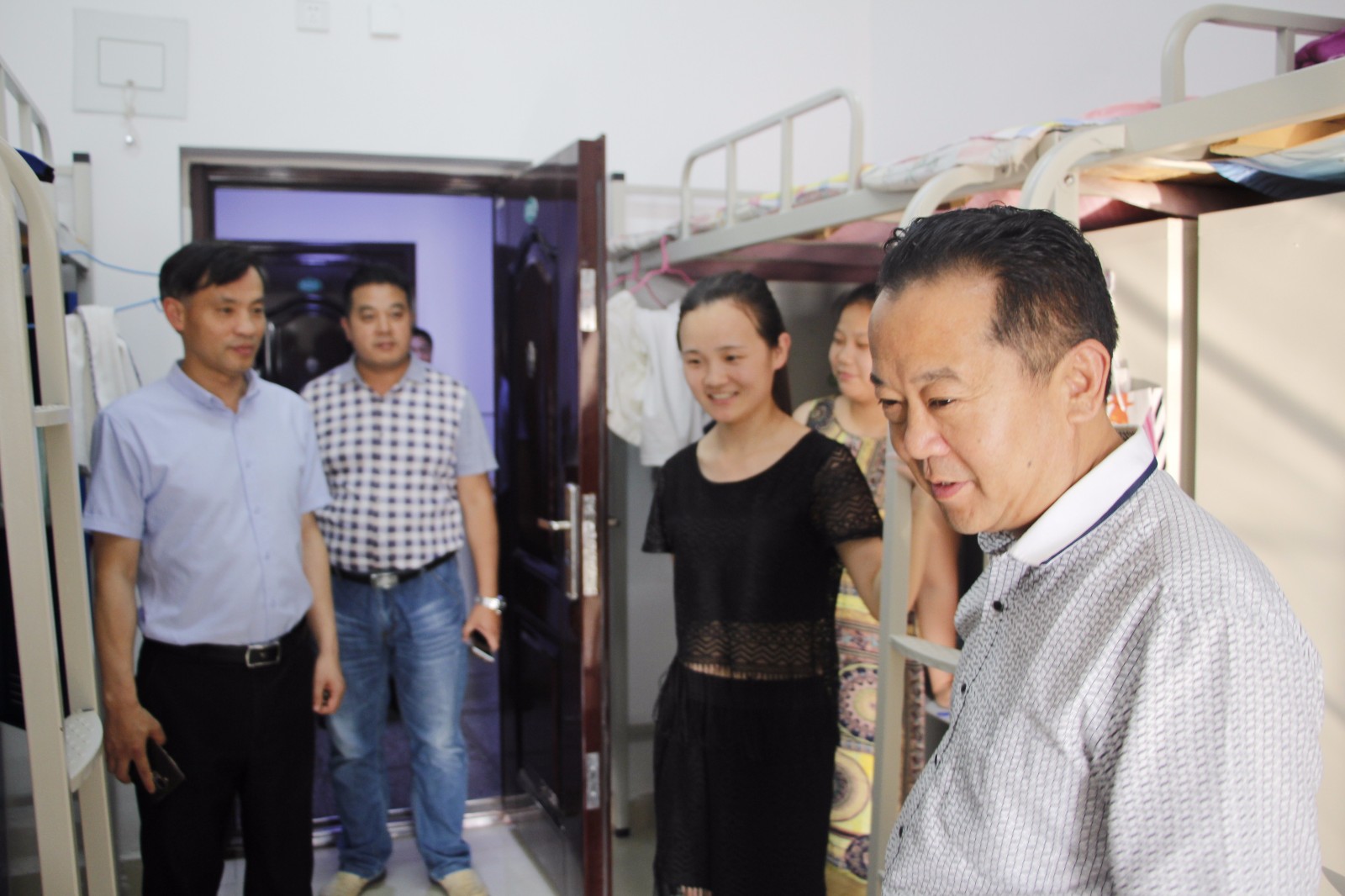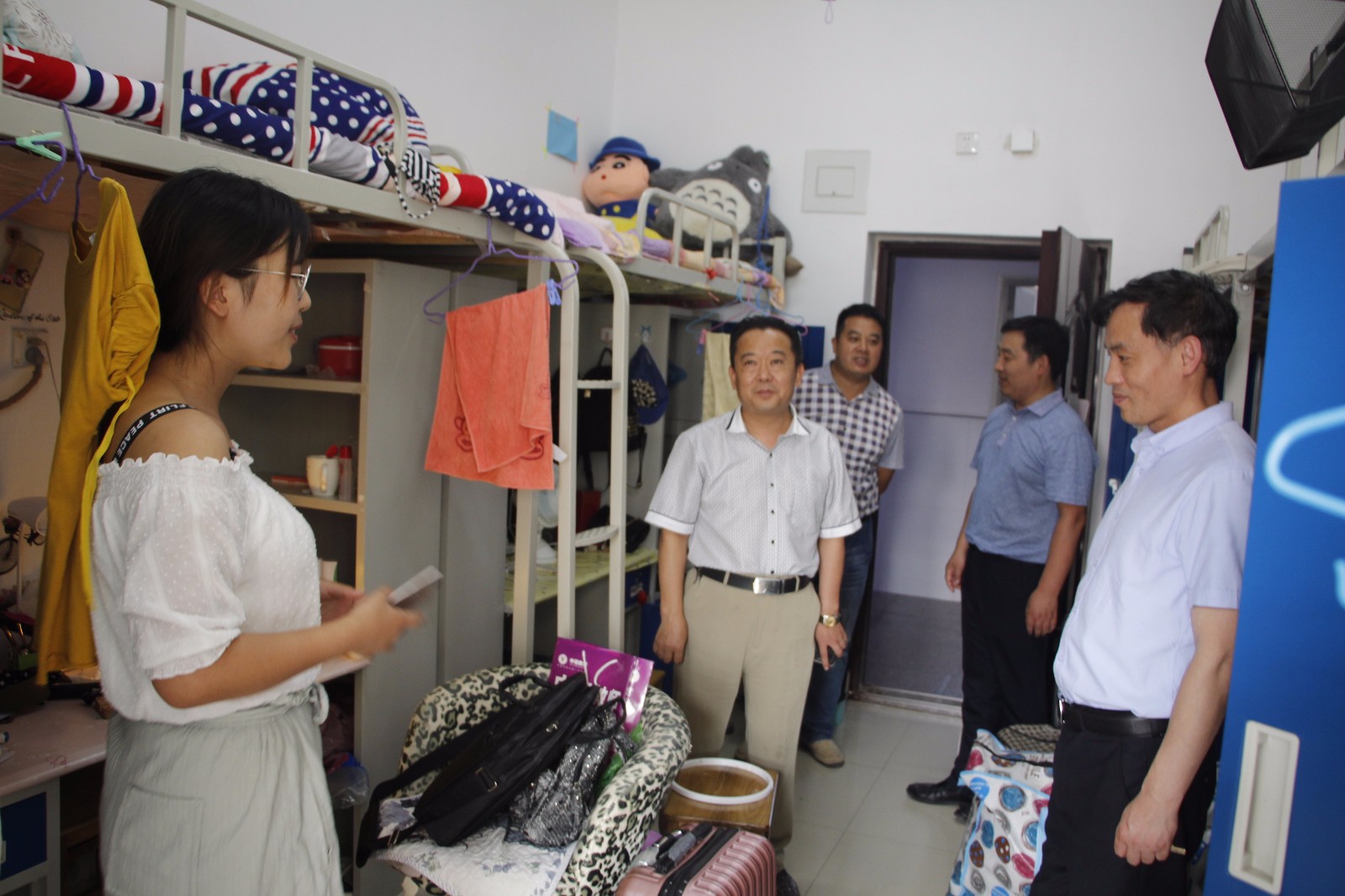 6月14日下午,在2018届毕业生离校之际,欧美av 党委书记曹明贵、院长彭荣胜、副院长潘国兵、郭军升、党委副书记张晓峰等领导携学院所有辅导员老师走访了2018届学生宿舍,对即将离校的毕业生表示关心和关爱。