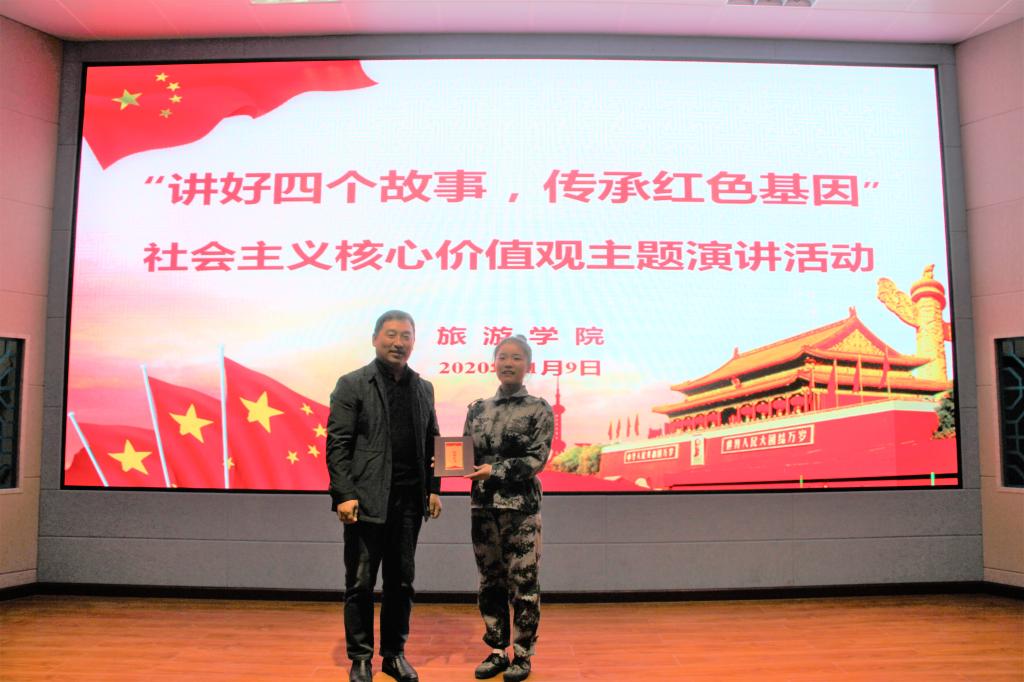 活动伊始,党委书记曹明贵对此次活动进行了致辞,接着由李明伟老师、牛俊格等七位优秀学员展开了演讲比赛。其中,牛俊格同学所演讲的《上甘岭战役》尤为出彩,一声声铿锵有力、振奋人心,将伟大英雄黄继光的英勇身姿深深地刻入人心,生动诠释了民族坚忍不拔的精神,博得观众的阵阵掌声。活动期间还穿插了古筝弹奏、茶艺表演和手语舞表演,体现出我院学子的青春风采。比赛结束后,牛俊格以优异的表现夺得第一名,活动最后老师与参赛人员合影留念。