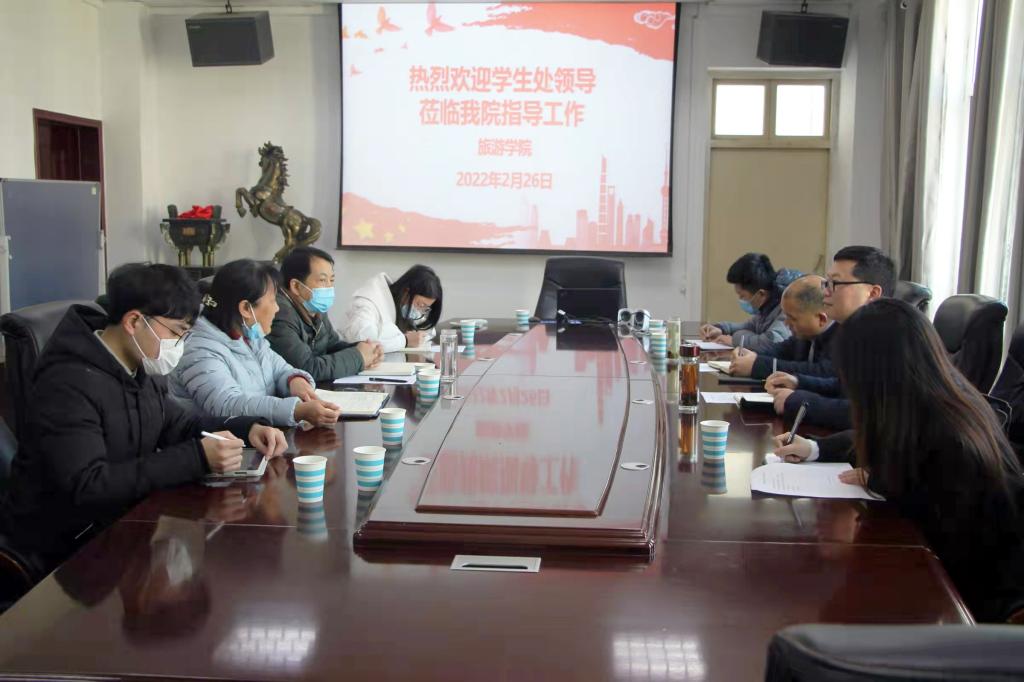 2月26日上午,学生处处长王建旭、副处长雷梁一行莅临我院调研指导学生工作,欧美av 领导班子以及全体辅导员参加了调研座谈。会议由欧美av 党委书记雷前龙主持。