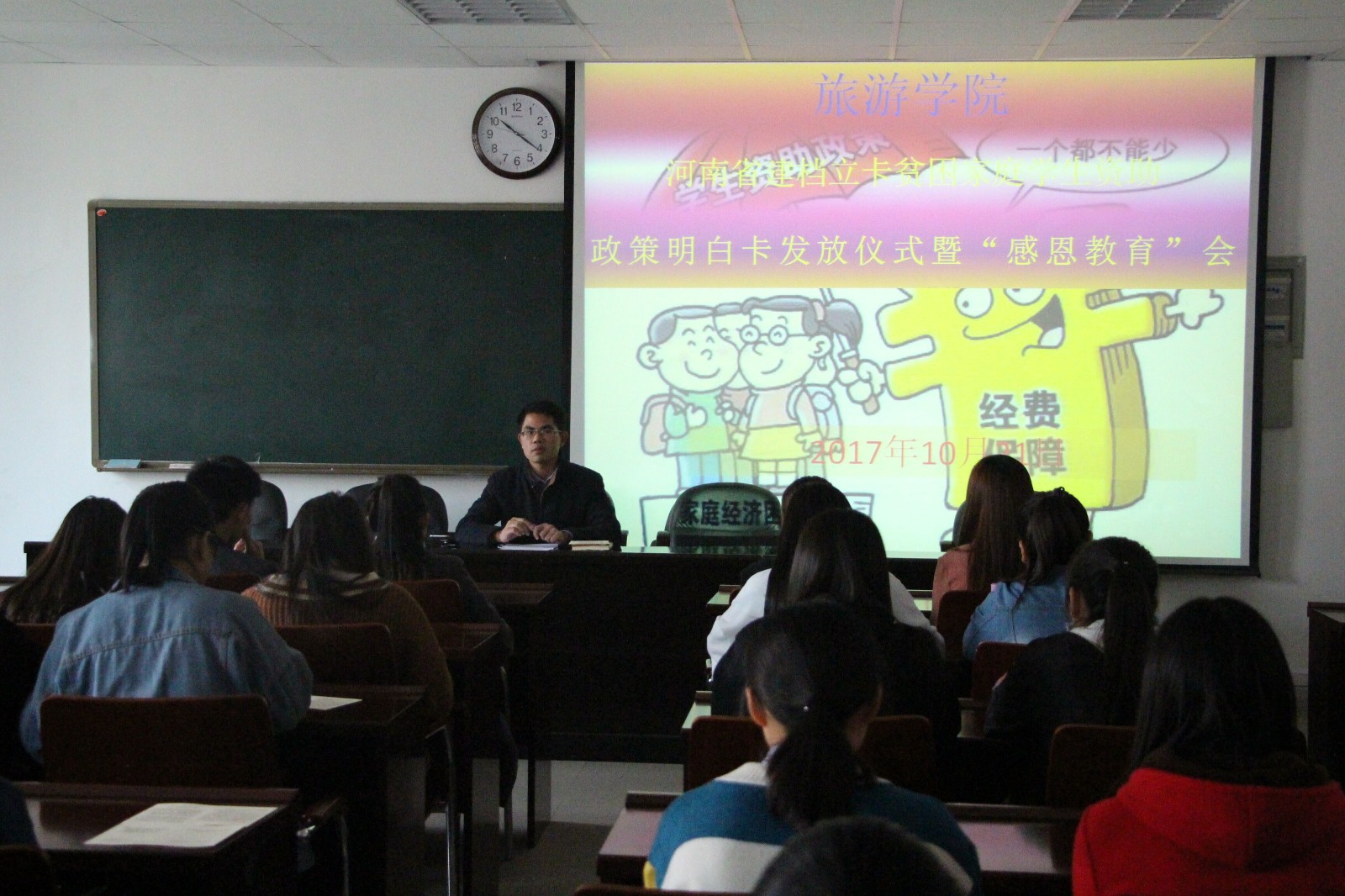 10月21号上午,欧美av 于经管楼401会议室顺利举办了河南省建档立卡贫困家庭学生资助政策明白卡发放仪式暨“感恩教育”会议,我院助贷专员张庆敏和72名建档立卡家庭学生参加了本次会议。