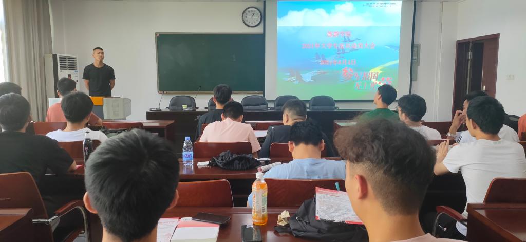 为增强大学生投身国防的意识,增进对军队建设及征兵政策的了解,6月4日,信阳师院欧美av 大学生应征入伍动员会在经管楼401举行。欧美av 团委老师赵子鉴、退伍军人李建新以及19、20级全体男生参加了此次动员会。