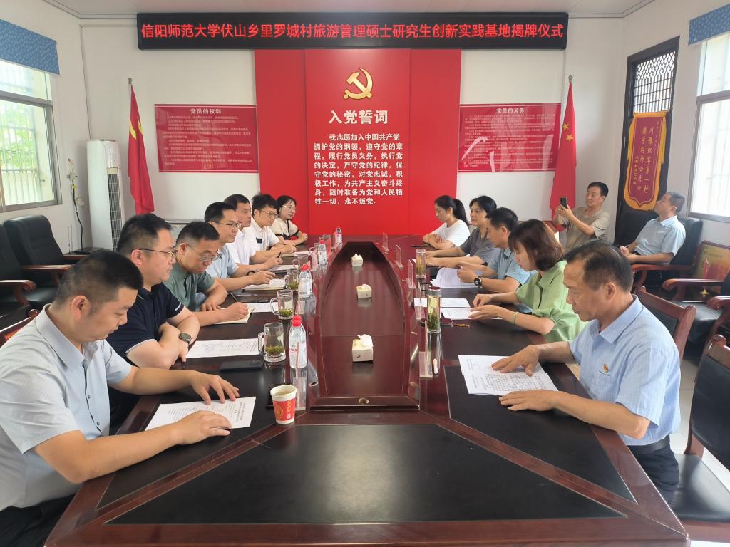 6月27日,欧美av 与商城县伏山乡进行合作洽谈,在里罗城村签订“旅游管理创新实践基地”协议并揭牌。欧美av 院长高军波、商学院院长彭荣胜、伏山乡人民政府乡党委书记王德全、乡长姜明晶、里罗城村党支部书记陈启鑫、学一文旅(河南)科技有限公司总经理林霆及基地负责博士教师、研究生代表等参加。座谈会由姜明晶主持。