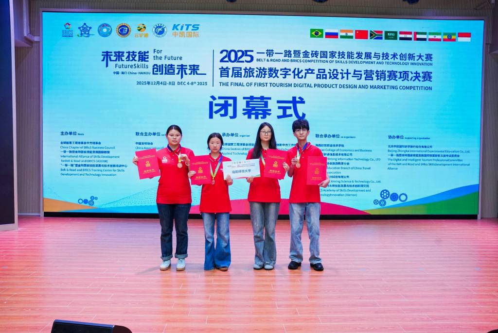 近日,由“一带一路”暨金砖国家技能发展国际联盟、“一带一路”暨金砖国家技能发展与技术创新培训中心主办,中国发明协会、教育部中外人文交流中心联合主办的2025“一带一路”暨金砖国家技能发展与技术创新大赛之首届国际研学课程设计与实施创新赛项、首届旅游数字化产品设计与营销赛项全国总决赛在重庆和海口相继落下帷幕。欧美av 作品分获“国际研学课程设计与实施创新赛项”三等奖(参赛学生:李明璁、吴思妤、佟晴欣、肖艳,指导教师:宋春巧)、“旅游数字化产品设计与营销赛项”三等奖(参赛学生:张馨方、万硕、赵婉婉、常顺,指导教师:魏超)。