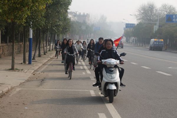 本次骑行活动从信阳师范学院出发,一路骑行至南湾。抵达南湾后,全体成员开始热身活动,伴随着轻快活泼的音乐声,大家开始手舞足蹈的跳起欢快的兔子舞,队员间相处的隔阂感也逐渐消除。热身过后,全部队员分为小胖队和超瘦队,自此一个个有趣的游戏逐步开展。在眉目传情环节,表情虽搞怪难懂,队员间仍凭着彼此间的默契猜出答案,赢得游戏的胜利。搭桥过河则着重考验队员间的团结协作能力,队员之间相互搀扶,共同进退,完全保持友谊第一,比赛第二的优良竞争精神,在欢声笑语中关系逐渐密切。队员间的关系更是在荒岛求生的游戏中得到升华,在一片报纸上要想站上十个人谈何容易,而队员间却通过相互信赖,相互依偎,甚至扛着队友,对他们而言,不仅是游戏的胜利,更是自身能力的提升。游戏结束后,双方队员各自派出代表进行总结发言,纷纷感谢此次骑行活动的举办,并表示在此项活动中深受影响,身心皆悦。