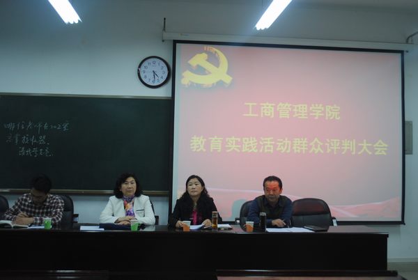 李保红代表我院领导班子对我院党的群众路线教育实践活动开展情况进行总结。她指出,工商管理学院党的群众路线教育实践活动自3月份启动以来,在学校党委领导和校督导三组的精心指导下,学院紧紧围绕为民务实清廉的主题,按照“照镜子、正衣冠、洗洗澡、治治病”的总要求,坚持高起点开局、高标准开展、高质量推进,扎扎实实完成了学习教育、听取意见,查摆问题、开展批评,整改落实、建章立制三个环节的工作任务,取得了显著的效果,达到了预期的目标。