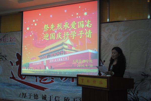 9月30日,我院在贤林讲坛举办了“祭先烈承爱国志,迎国庆抒学子情”道德讲堂活动。校党委副书记高建社出席活动,校党委宣传部、学工部、校团委、我院相关负责同志和200余名学生代表参加了活动。活动由我院党总支副书记李辉主持。