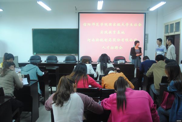 9月10日上午,工商管理学院携手信阳师范学院国家级大学生社会实践教育基地河南羚锐制药股份有限公司在经管楼会议室举办人才招聘会,党总支副书记李辉,团总支书记周明成向羚锐公司招聘负责人介绍欧美av概况 和前来应聘学生的基本情况,协调组织好各项工作,保证人才招聘会顺利举行。