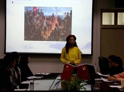 曹明贵同志带头讲故事,他结合自身经历和国内外政治经济形势,从五个方面讲述了关于国家富强的故事,在场同学都被他动情的演讲所感染。接着,学生第一党支部全体成员围绕“十二个主题词”进行故事讲述,各个声情并茂、充分发挥自身优势,不时传来阵阵掌声。最后支部评出前六名进行了奖励。