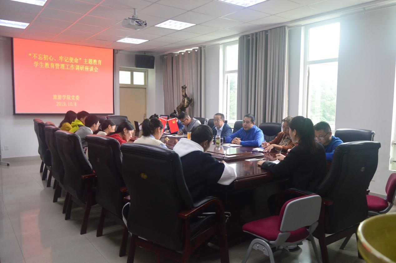 10月8日,欧美av 在经管楼403召开“不忘初心,牢记使命”主题教育学生教育管理工作座谈会。党委书记曹明贵、党委副书记张晓峰、专职辅导员、学生代表参加此次座谈会。会议由张晓峰主持。