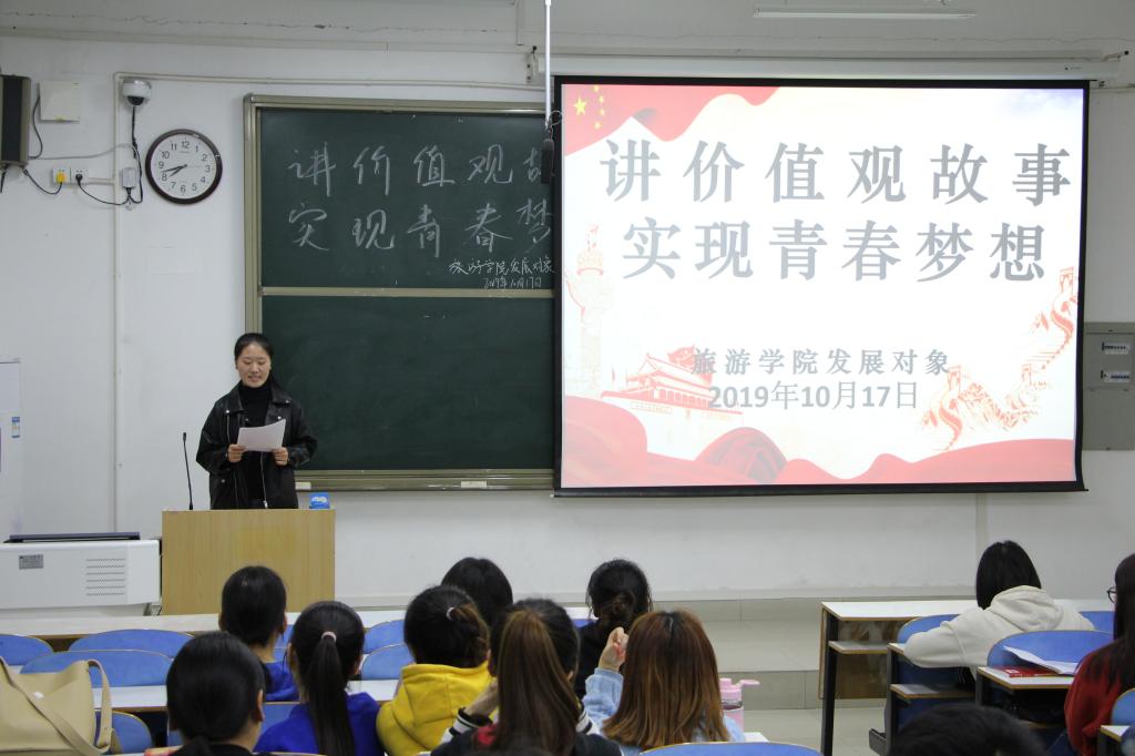 为发挥优秀学生党员榜样示范作用,帮助新一期发展对象进一步端正入党动机,10月17日,欧美av 于经管楼204举办主题为“讲价值观故事,实现青春梦想”的示范教育活动,我院正式党员郭明月、仝爽爽、贾蒙蒙和本次发展对象参加此次活动。