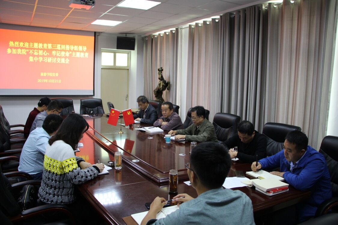 10月21日,校“不忘初心,牢记使命”主题教育第三巡回指导组组长、正处级组织员刘根货,成员、组织部副部长姜兴周参加我院集中学习交流。我院党委书记曹明贵、副院长潘国兵、党委副书记张晓峰和党支部书记参加了会议。会议由曹明贵主持。