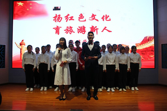 于土木楼601举行了“扬红色文化,育旅游新人 ”活动。学院党委副书记张晓峰、团委书记张庆敏以及200名学子观看此次活动。本次活动由冯锦杰和和淑明主持。