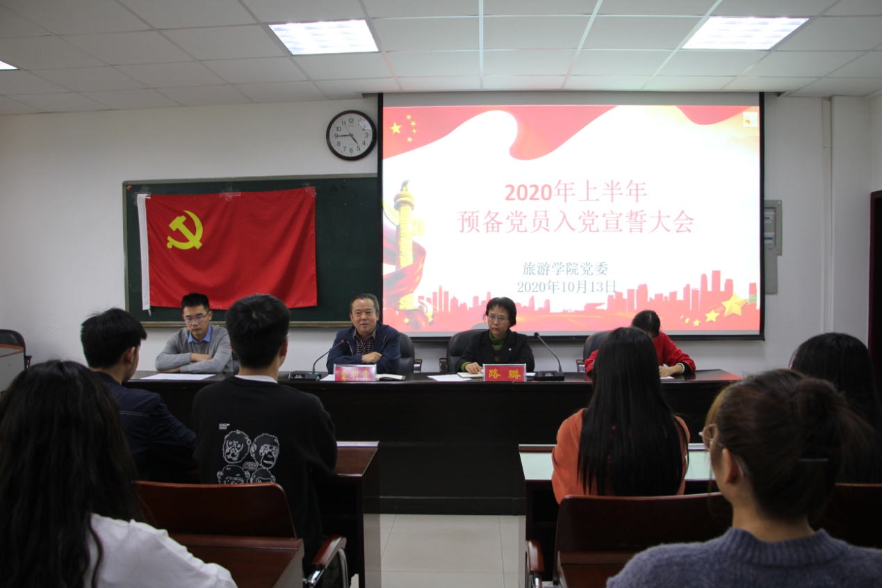 受疫情影响,欧美av 党委预备党员入党宣誓大会推迟至10月14日下午,在经管楼401举行。欧美av 党委书记曹明贵、副处级辅导员路璐、学生党支部书记郑征、专职组织员闫会姝和欧美av 全体学生党员及入党积极分子参加此次会议。会议由路璐主持。