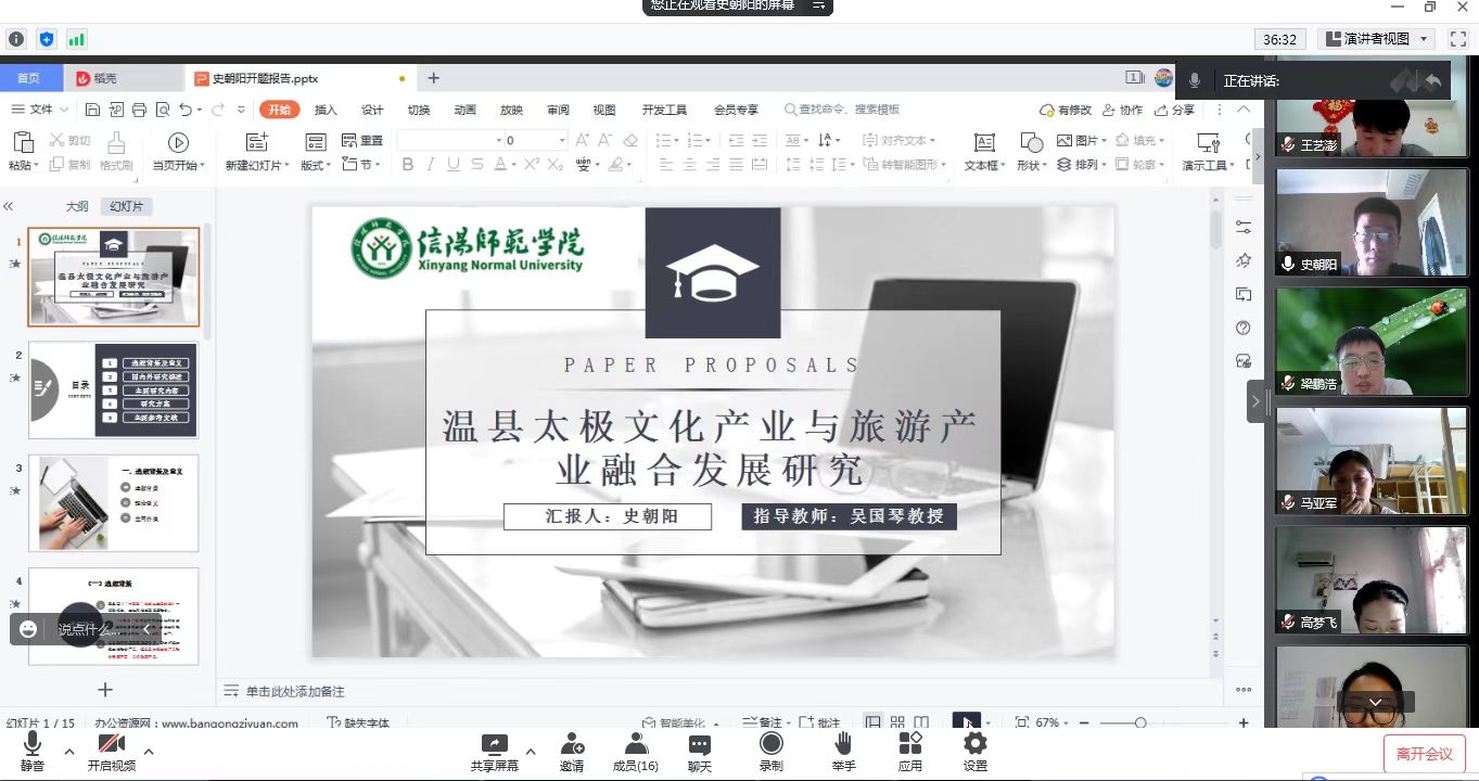 6月26日下午,欧美av 2021级旅游管理硕士研究生毕业论文开题报告会分3组在经管楼401、404和线上腾讯会议同时举行。彭荣胜、高军波和吴国琴教授分别任3组评审小组组长并主持报告会。