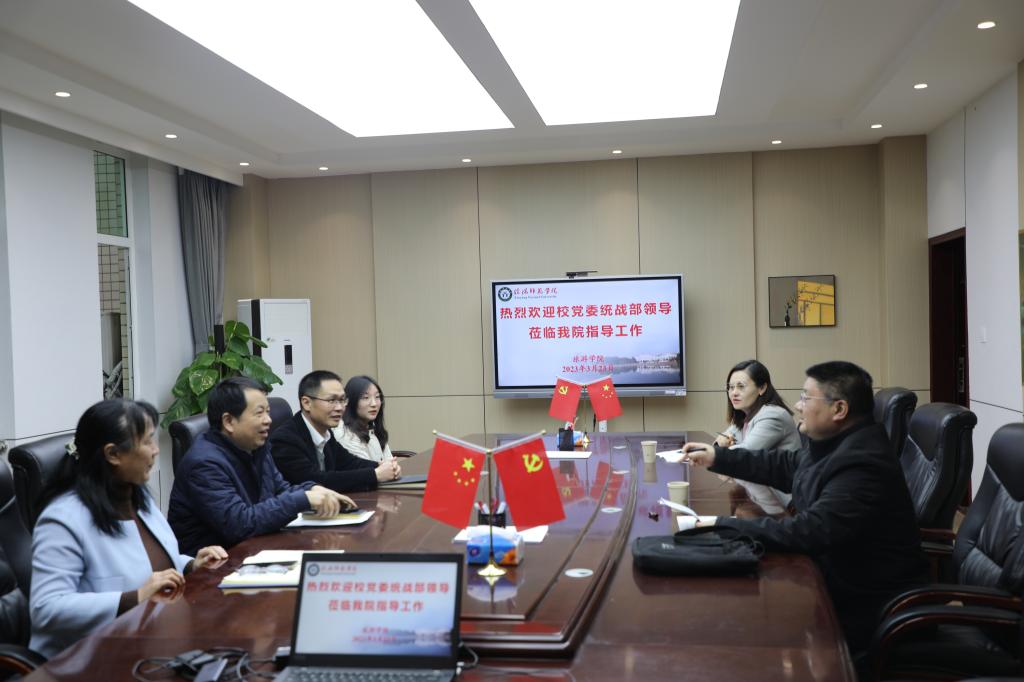 3月23日下午,校党委委员、统战部部长曾伏虎来欧美av 调研指导工作,并与欧美av 领导老师和学生代表进行现场交流。