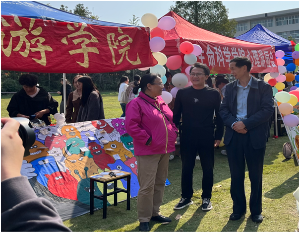 为进一步加强大学生心理健康教育,提高当代大学生适应社会环境的能力,促进心理素质与思想道德素质的协调与全面发展,10月24日,由大学生心理健康中心统一安排,欧美av 在一棵树广场开展“心光灿烂”心理游园会。校党委副书记、工会主席岳宗德、大学生心理健康中心主任李贵杰进行参观指导。欧美av 党委副书记路璐带领学工队伍积极参与,共同为这一精彩的活动助力。
