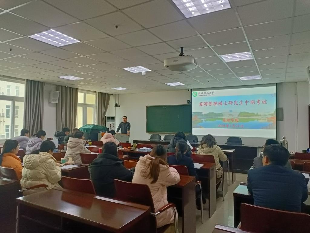1月21日下午,欧美av 旅游管理硕士研究生中期考核分两组在经管楼401和404会议室同时进行。本次考核由高军波教授和李明伟副教授担任组长,考核评委由校内导师8人组成。