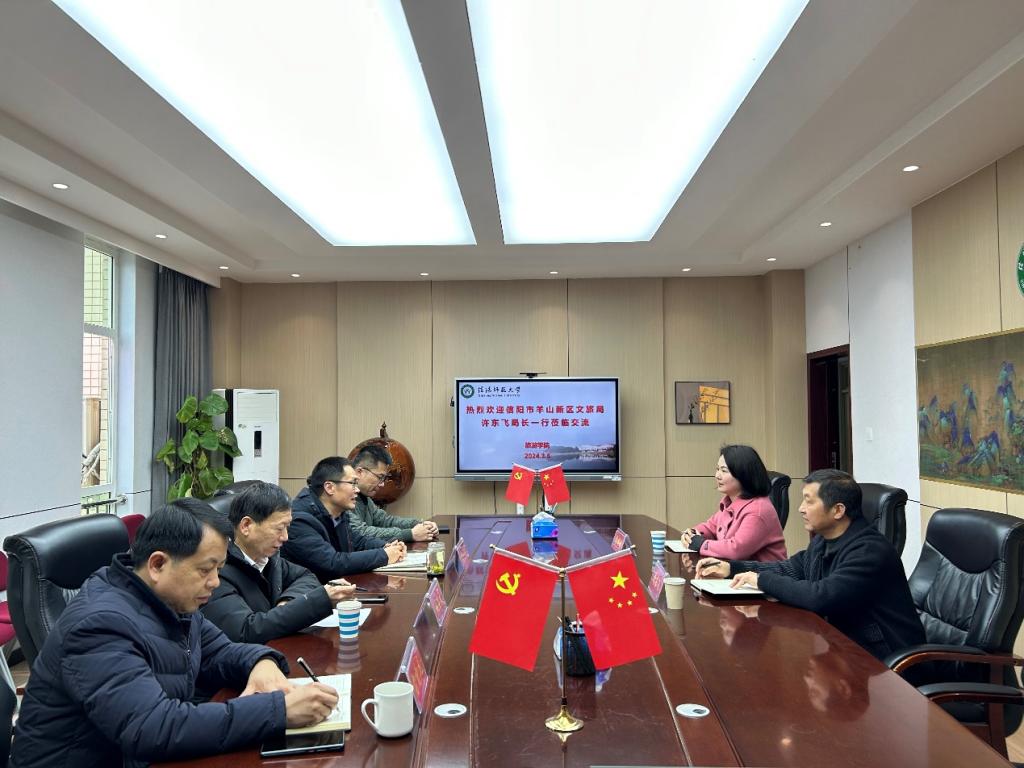 3月6日下午,羊山新区文广旅局许东飞局长、李婵娟副局长一行莅临我院考察交流。我院党委书记雷前龙、院长高军波、文学院院长姚圣良及相关老师参加了座谈会。