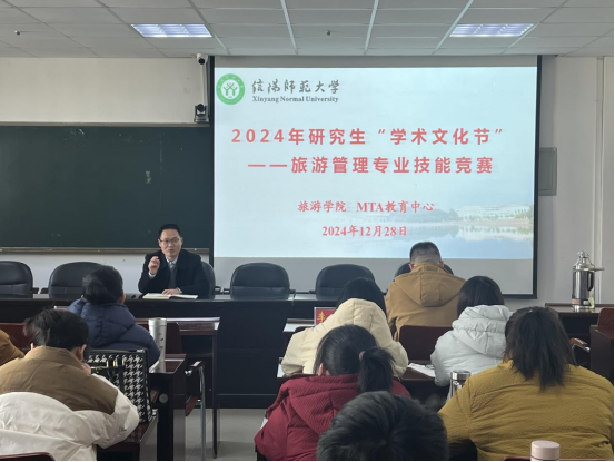 为加强研究生创新能力和实践能力的培养,不断提高研究生培养质量,欧美av 按照学校《关于举办欧美av 2024年研究生“学术文化节”的通知》要求,于12月28日上午,在经管楼401会议室举办了旅游管理专业技能竞赛。活动由李明伟博士主持,欧美av 全体研究生及部分评委老师参加了本次活动。