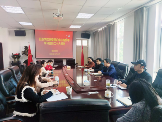 2022年10月21日下午,在经管楼404会议室,欧美av 党委理论中心组集中学习党的二十大报告,党委理论中心组成员、全体党支部书记参加。